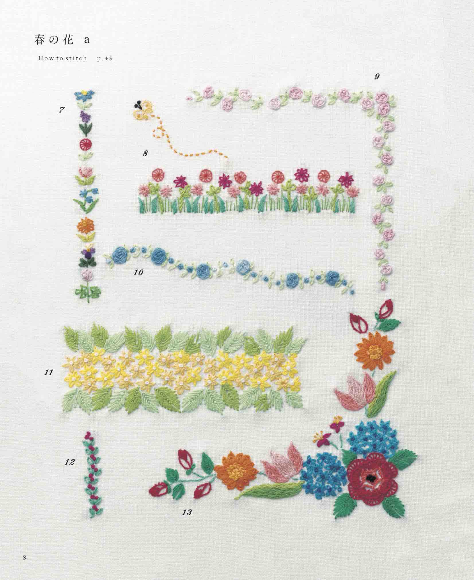 素材を色数も500色以上で、自由自在に色の組み合わせが楽しめる25番刺しゅう糸に絞り、作品展開。刺しゅう糸は、色数が豊富で価格も安価なので、グラデーションも含め多色使いの作品集として最適。