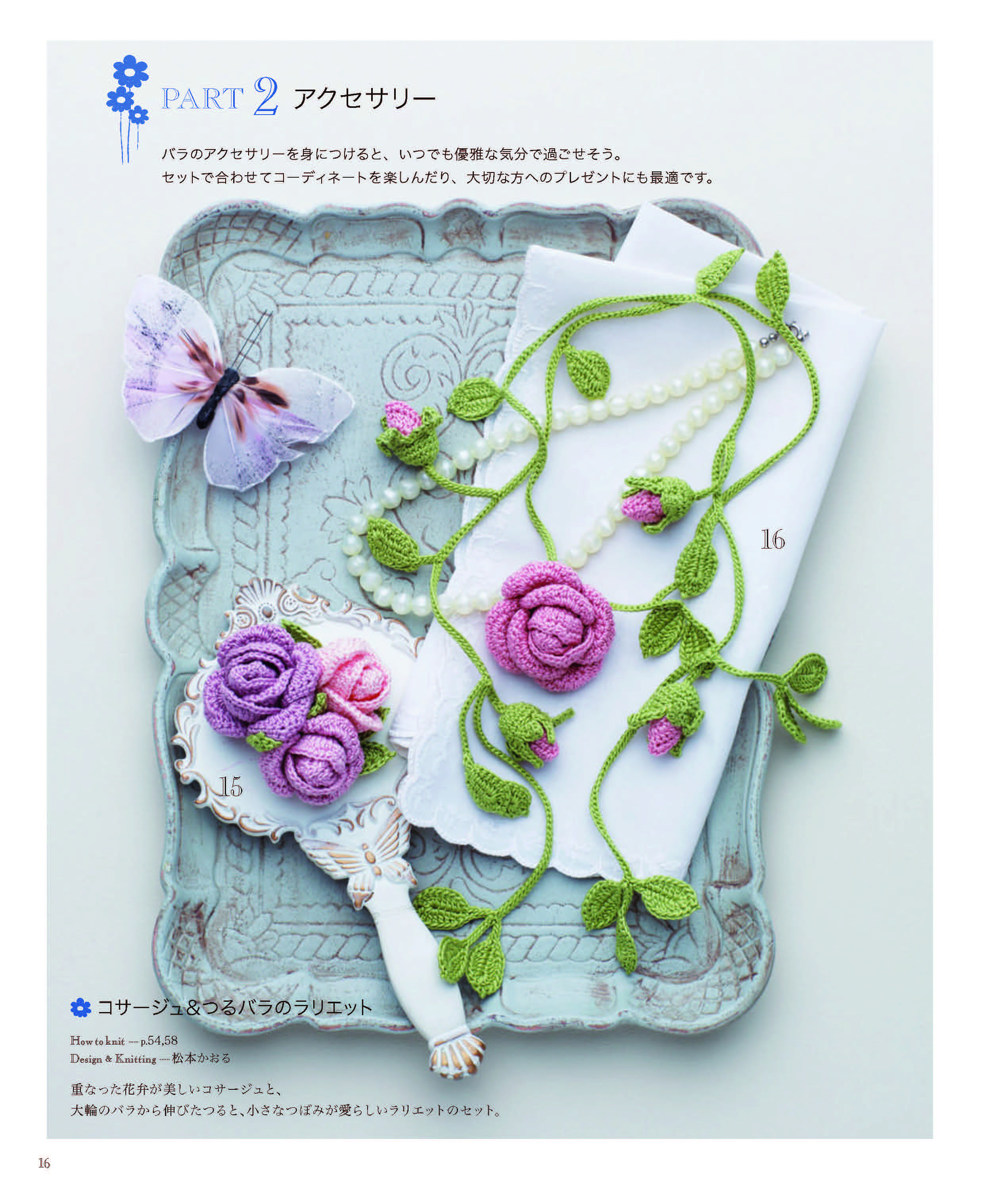 可憐で優美な薔薇は、様々な世代の女性から常に人気の憧れの象徴。この本では、2012~2016年既刊本の中から読者に圧倒的に人気の高かった薔薇モチーフの作品を特別セレクトしてまとめた再編集ベストセレクション。今回は薔薇モチーフをもっと楽しめるようにセクションを、part1コサージュ、part2アクセサリー、part3ショール&ストール、part4雑貨こもの、part5ドイリー&ブレードの5セクションにわけてたっぷり紹介。深紅、ピンク、イエロー、ホワイトの薔薇から、アイリッシュ風の薔薇、野薔薇、蔓薔薇など種類も豊富。身につけて楽しんだり、インテリアに取り入れて、大好きな薔薇に囲まれた生活を。