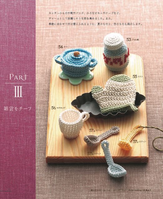 また本書では全てレース糸を使用しているが、ミニチュアこものは素材を変えるだけでサイズ、表情がガラリと変化。使用するものに合わせて、いろいろな素材で楽めるのも魅力。