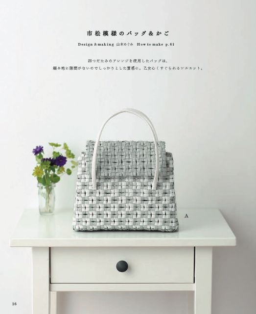 クラフトバンドで作るバッグとかごの作品集。今回は、読者から要望が多かった四つだたみ編みと花結びの技法に絞って22点紹介。普段使いしやすいボーダーやチェックから、かぶせつき、ワンポイントなど、持っているだけで華やかさをプラスしてくれるアイテムばかり。