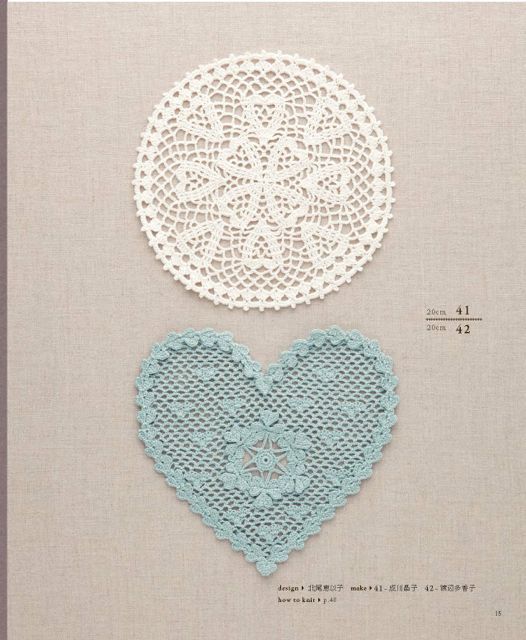 作品は円形を中心に、四角形、三角形、ハート形、リンゴ、洋ナシ、ブドウ、イチゴ、パイナップルなどのフルーツ形、カメ、ゾウなどのアニマル形まで、さまざまな形のドイリーで展開。楽しさ満載の一冊!