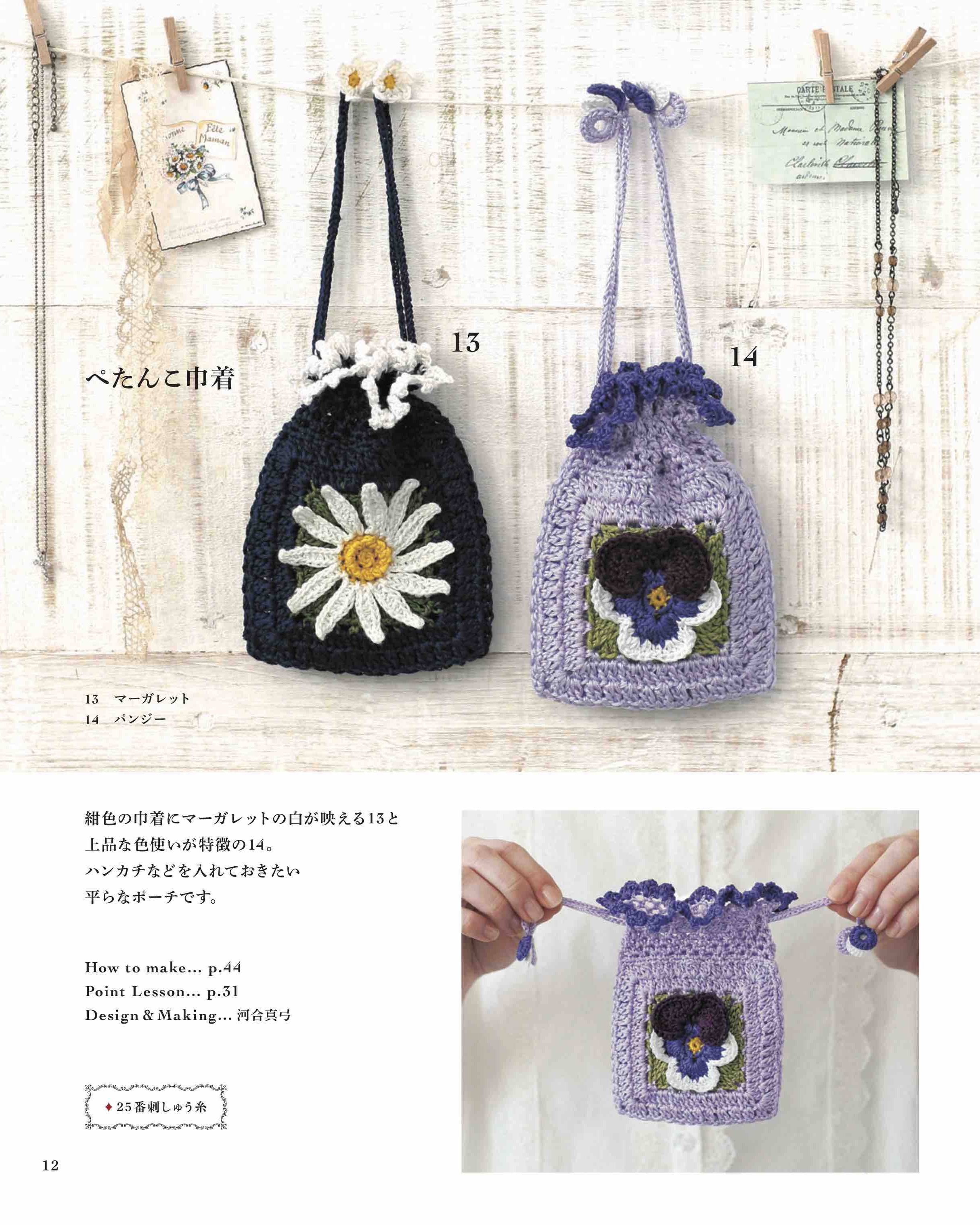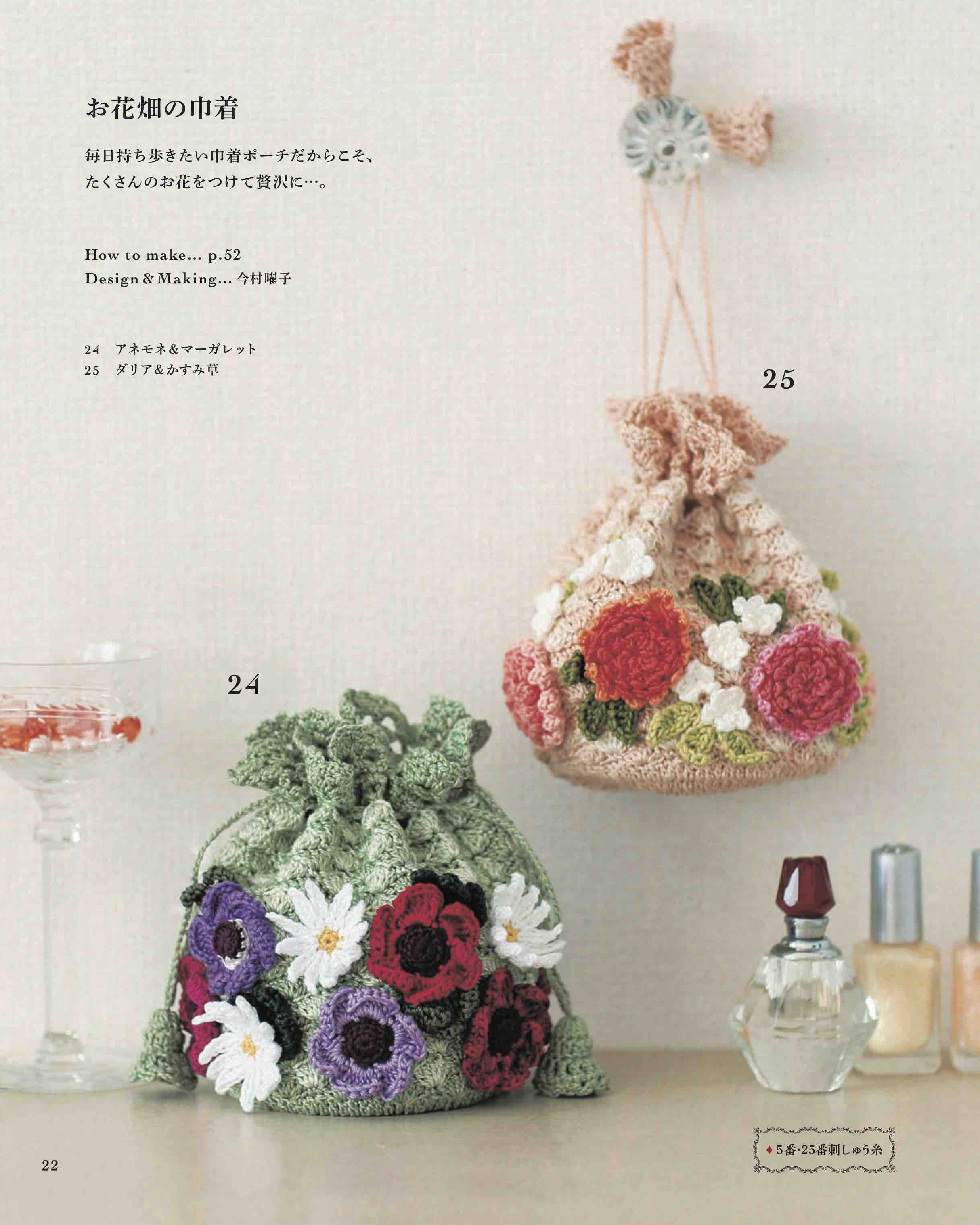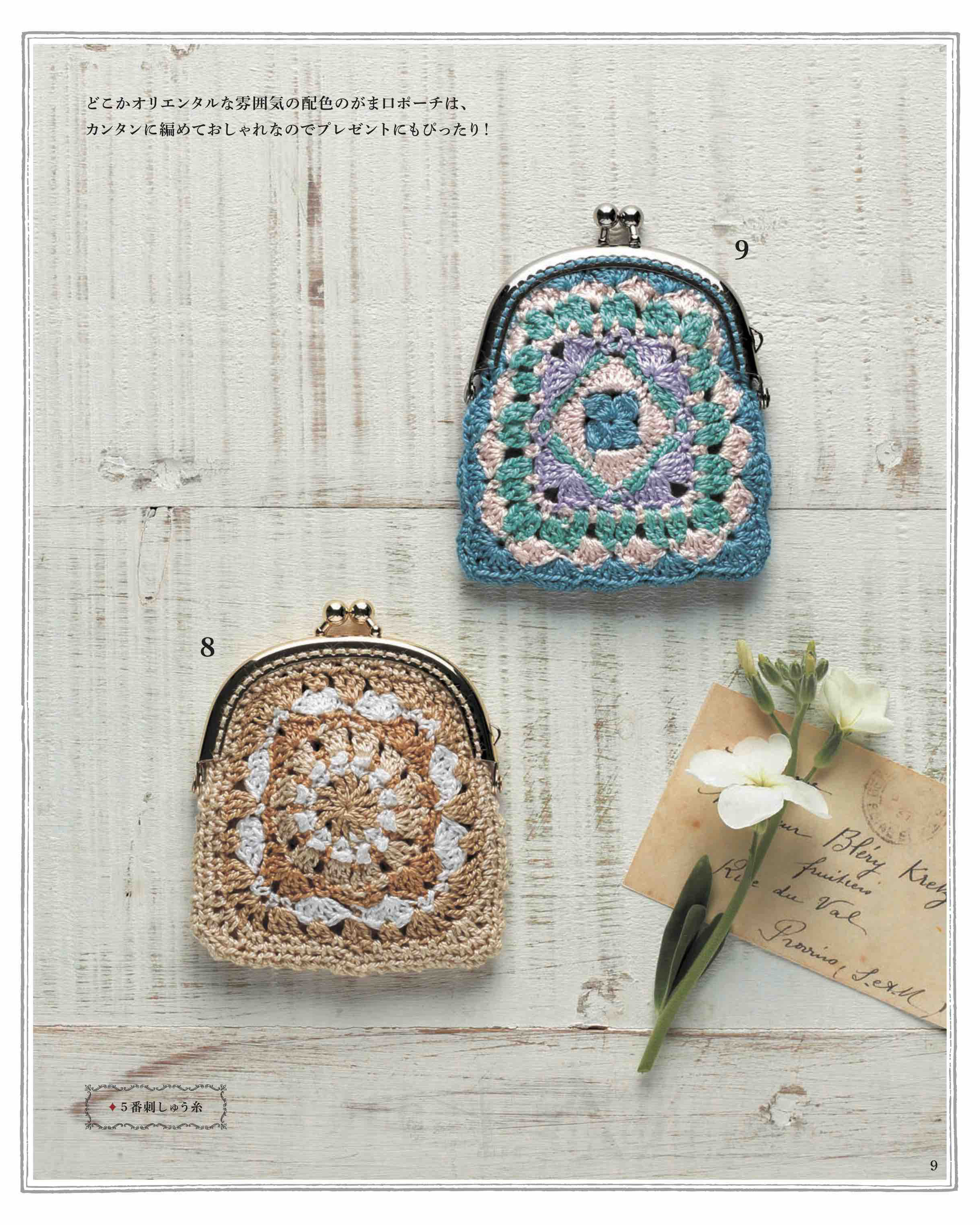 刺しゅう糸で編む色とりどりのポーチが満載!