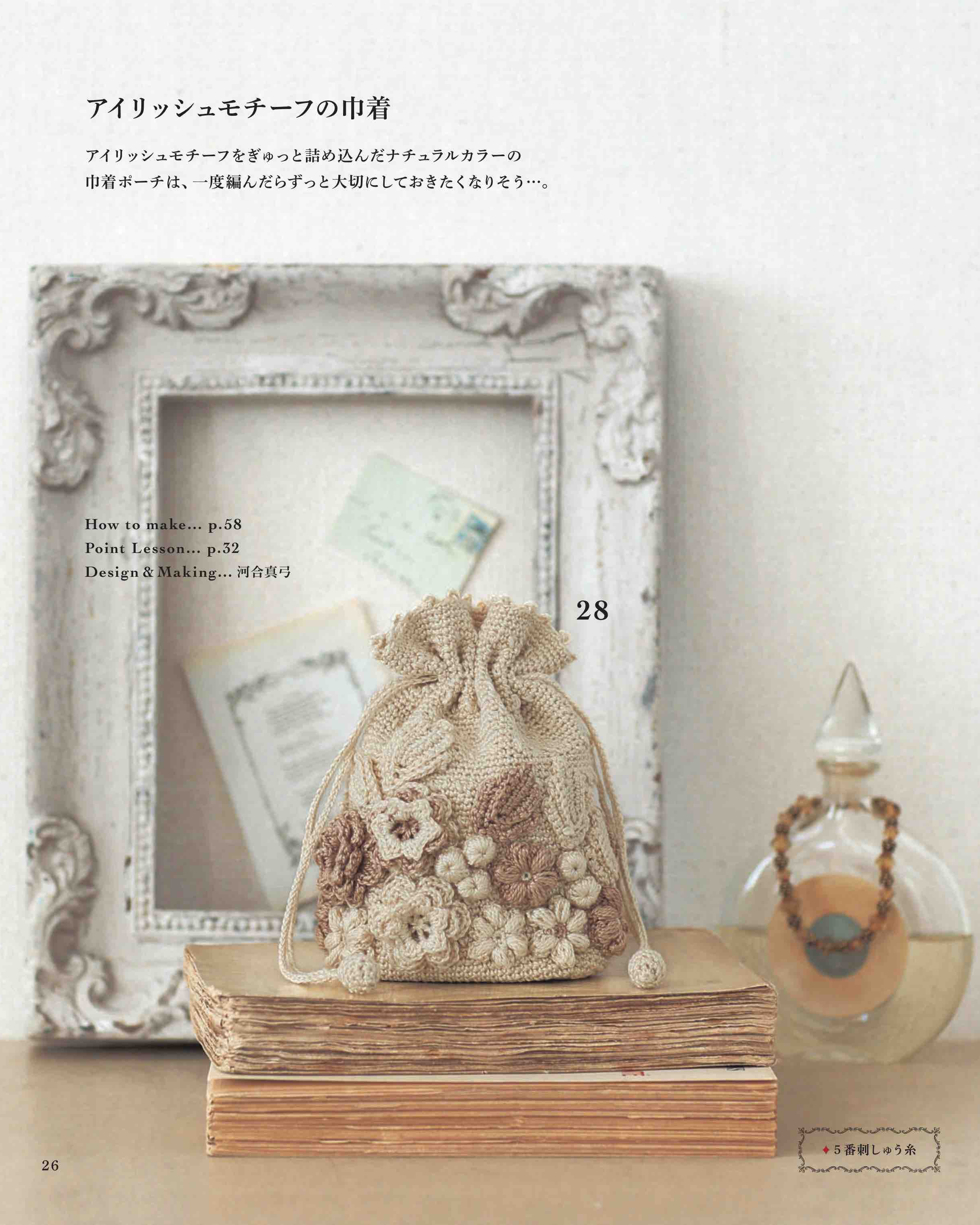 刺しゅう糸で編む、使いやすさが嬉しいかぎ針編みの小さなポーチの作品集。